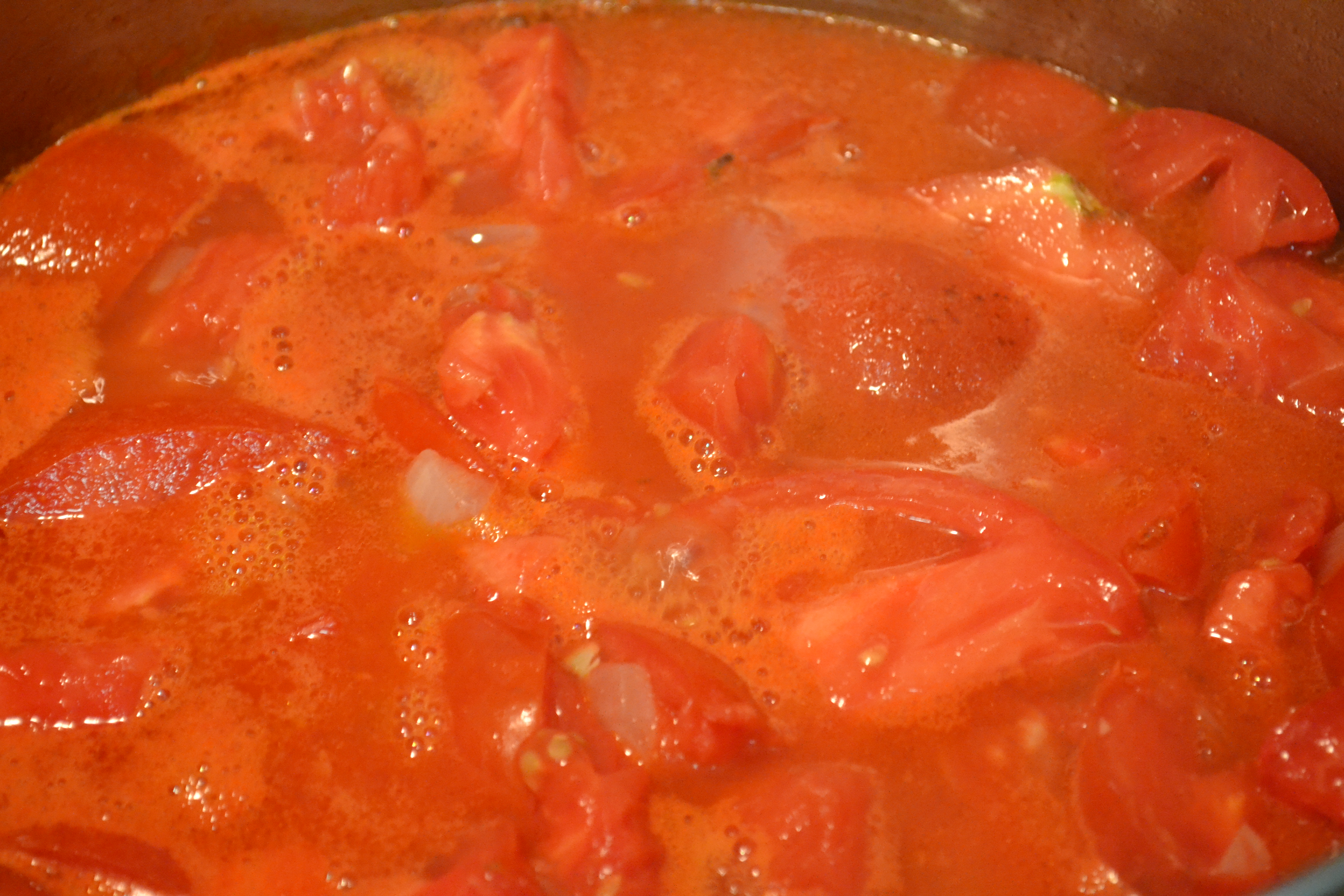5. When things are beginning to resemble a tomato soup, add in the seasoning.