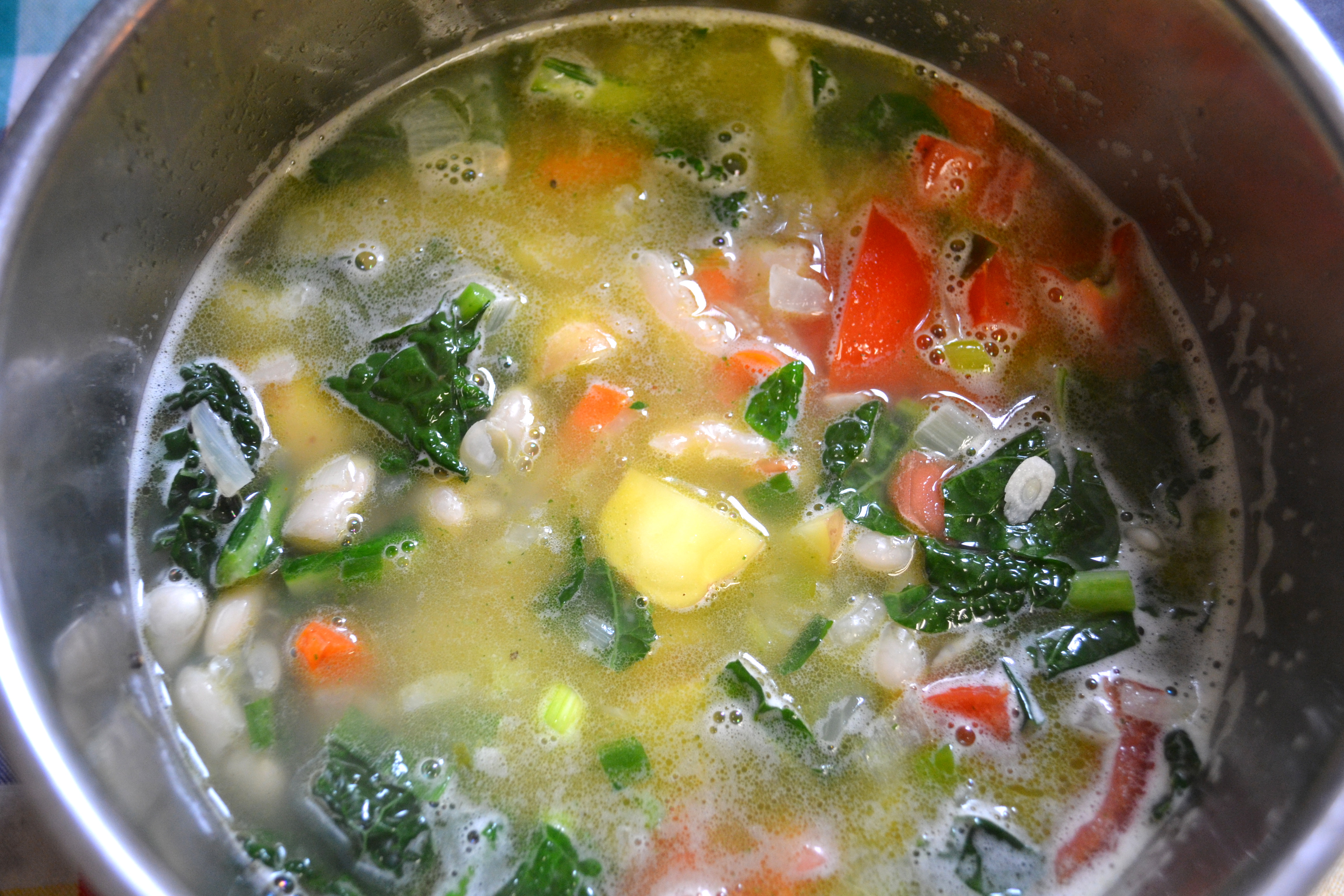 – Add in the vegetables according to cooking time, for example, potatoes go in last so they don’t fall apart in the soup.