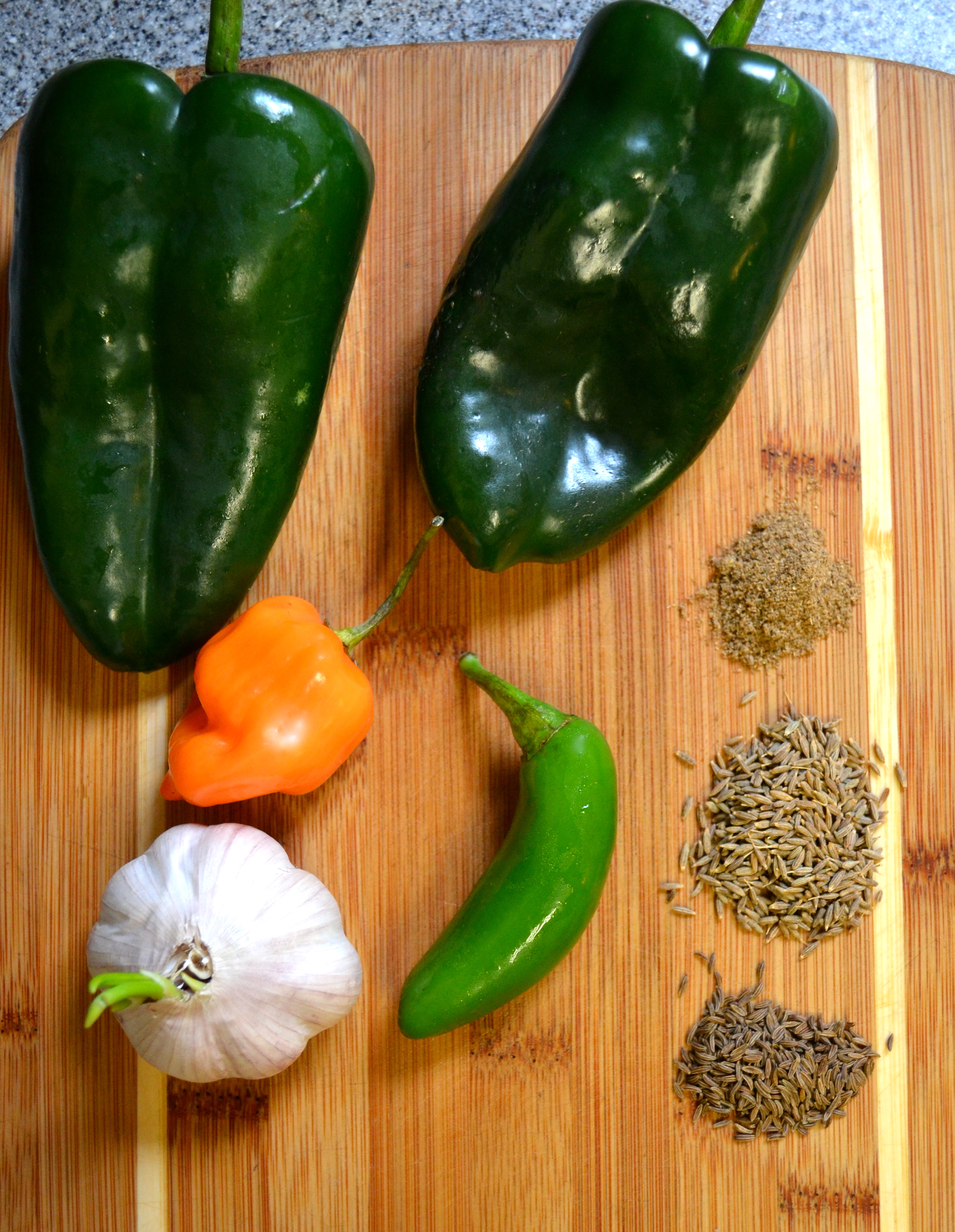 I then watched a few youtube videos in arabic (I think) that called for harissa with a ton of fresh red chilies, boiled and then deseeded. But I didn’t have any fresh red chilies. I also didn’t have birds eye chilies as I’d made that incredibly useful (not) Satan Hellfire sauce with a whole cupful of them. But I DID have fresh jalapenos, poblanos and habaneros.