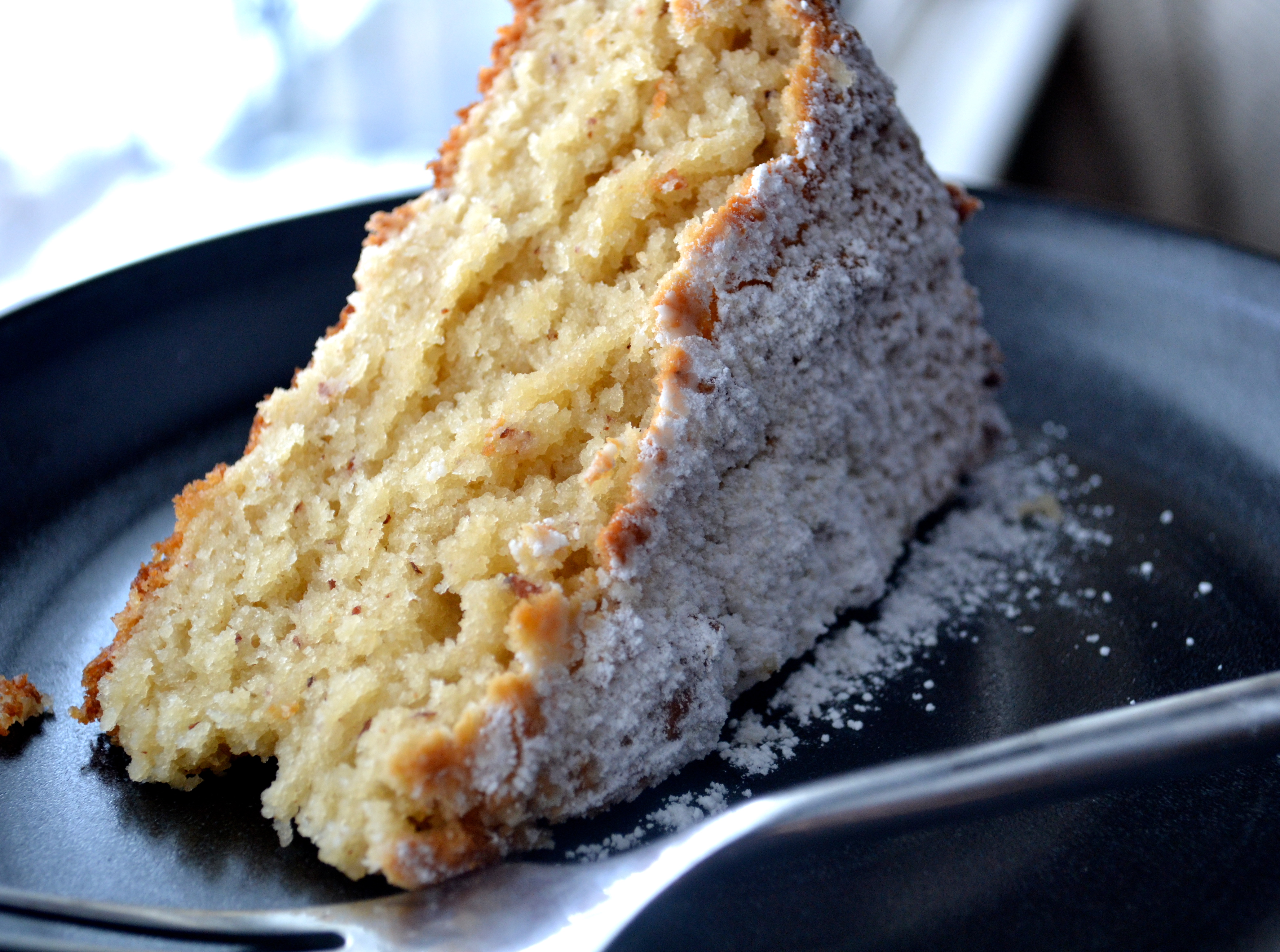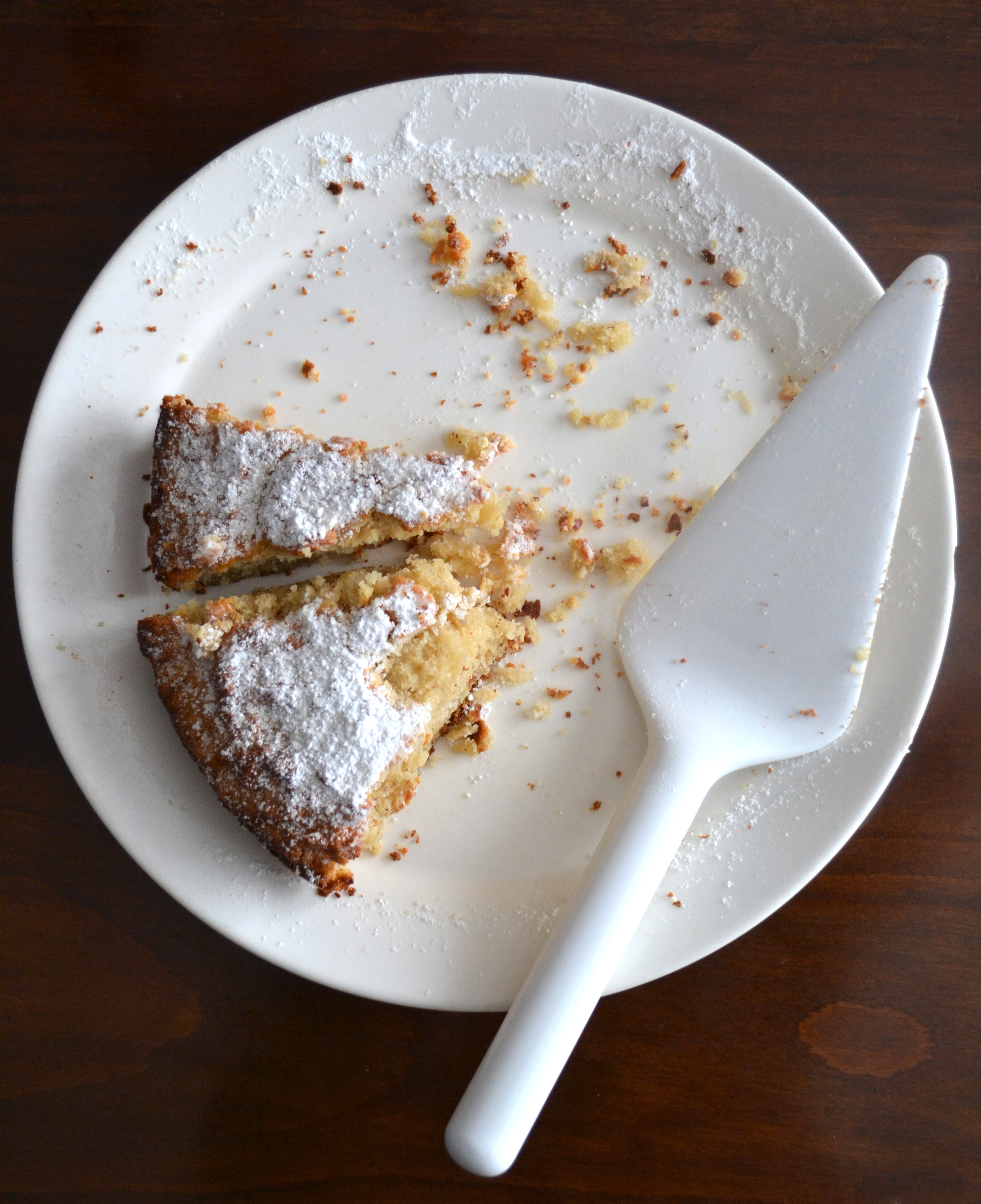 I have a new oven! Which displays the temperature! Gone are the days of guessing what it might be; my new trusty oven tells me. To celebrate the joys of modern life I decided to make cake for breakfast. Not even coffee cake, just CAKE. I felt like Bill Cosby. Not as out there as it may sound at first. Plenty of coffee cakes are worse than plain old cake with their cream cheese marbeling or butter/sugar crumb topping. I would put this morning’s cake on par with pancakes and maple syrup. Add a side of fruit and it’s a happy morning. We even ate breakfast at the dining room table with Irish Breakfast and rooibos tea and real actual cloth napkins.