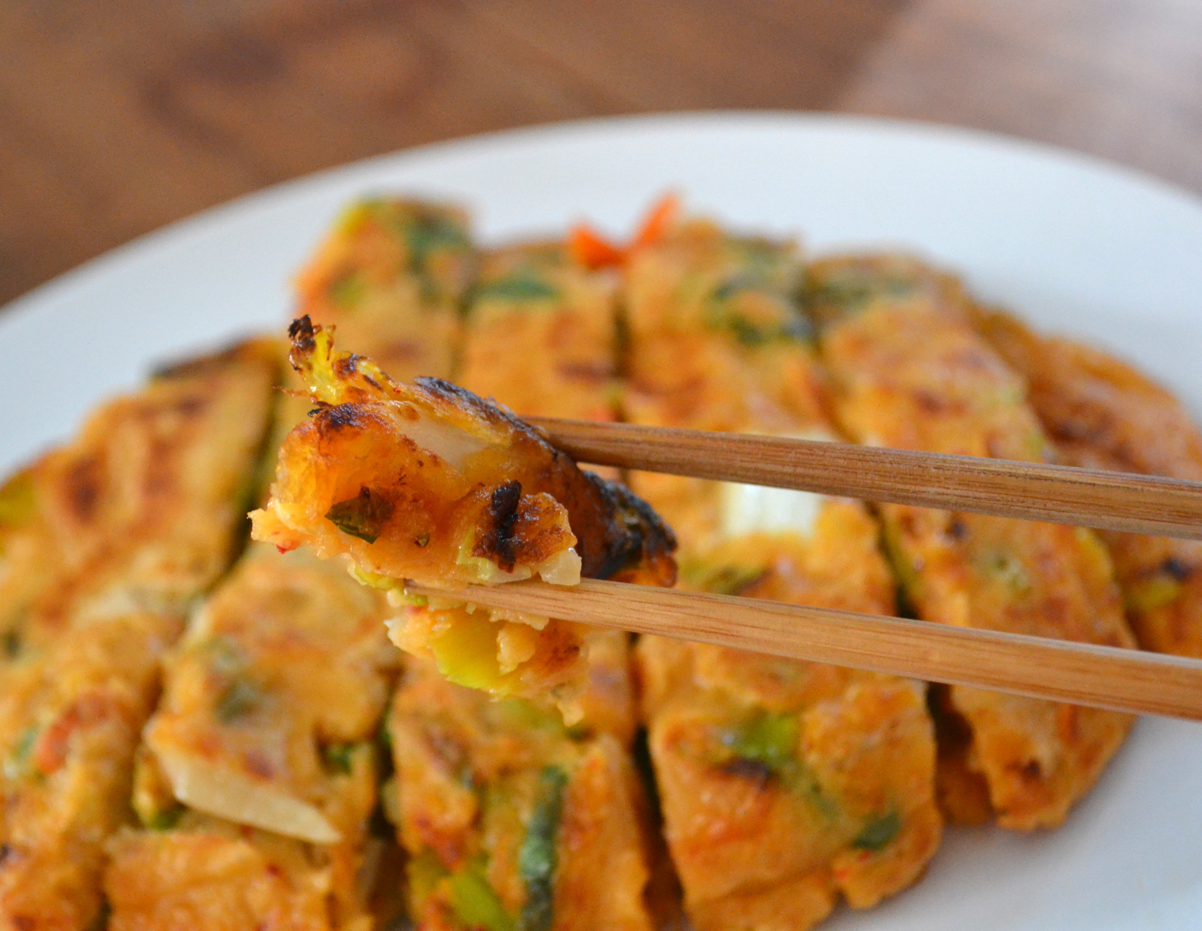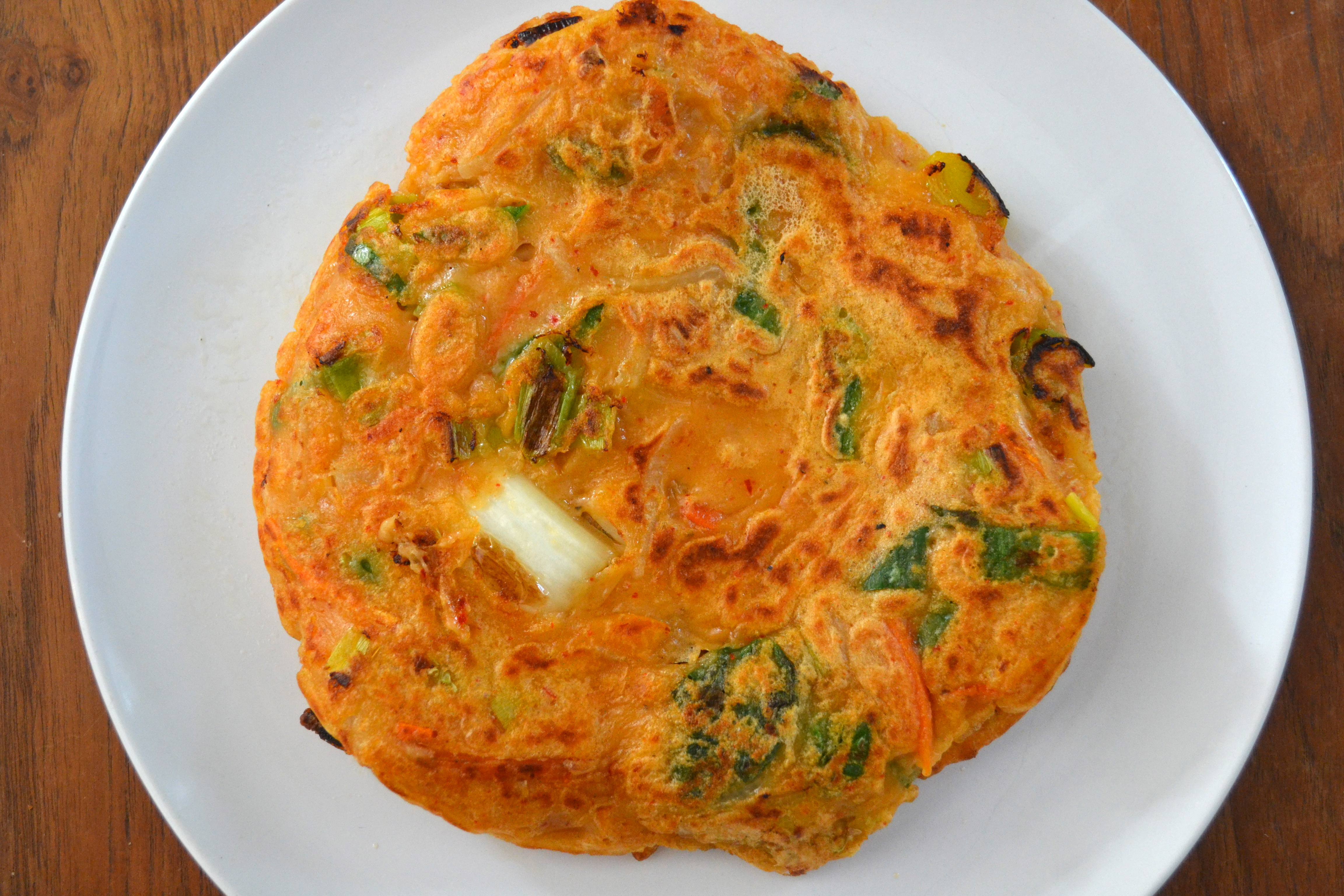 To this simple, basic batter can be added all kinds of vegetables such as spring onion, carrots, zucchini, chilies (and yes, even shrimp and other seafoods). These green onion and jalapeño pancakes are worth a try too.