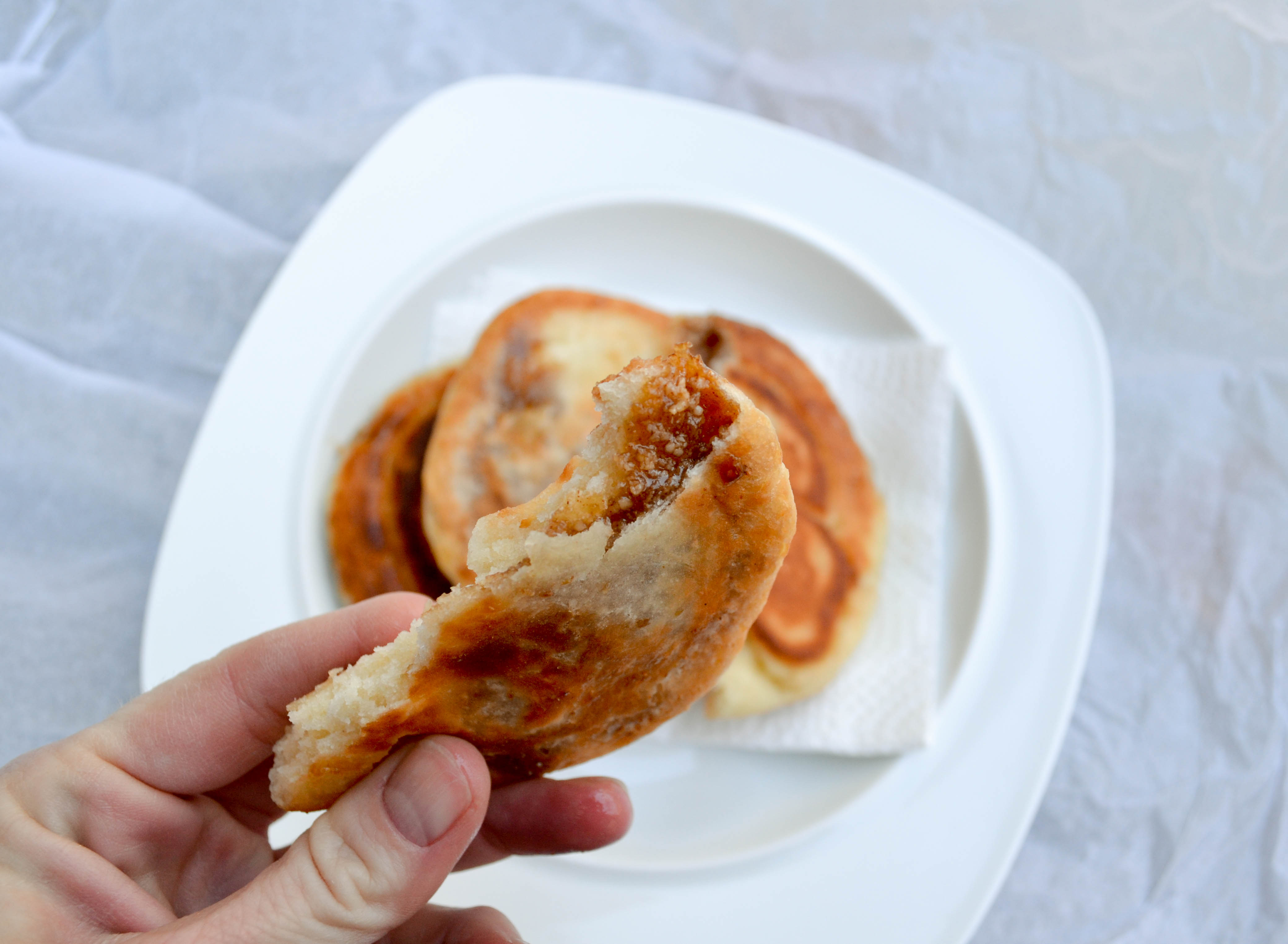 They’re a little labor intensive for first thing in the morning, but you could make the batter the night before or start it early in the am and fry up a batch by brunch time. I made them for an after school snack and then heated up a leftover one with some fruit for my daughter’s breakfast. Of all things, my 8-yr old son wasn’t too keen on them—he said he likes eating ‘hot food with a fork’ and not with his hands!