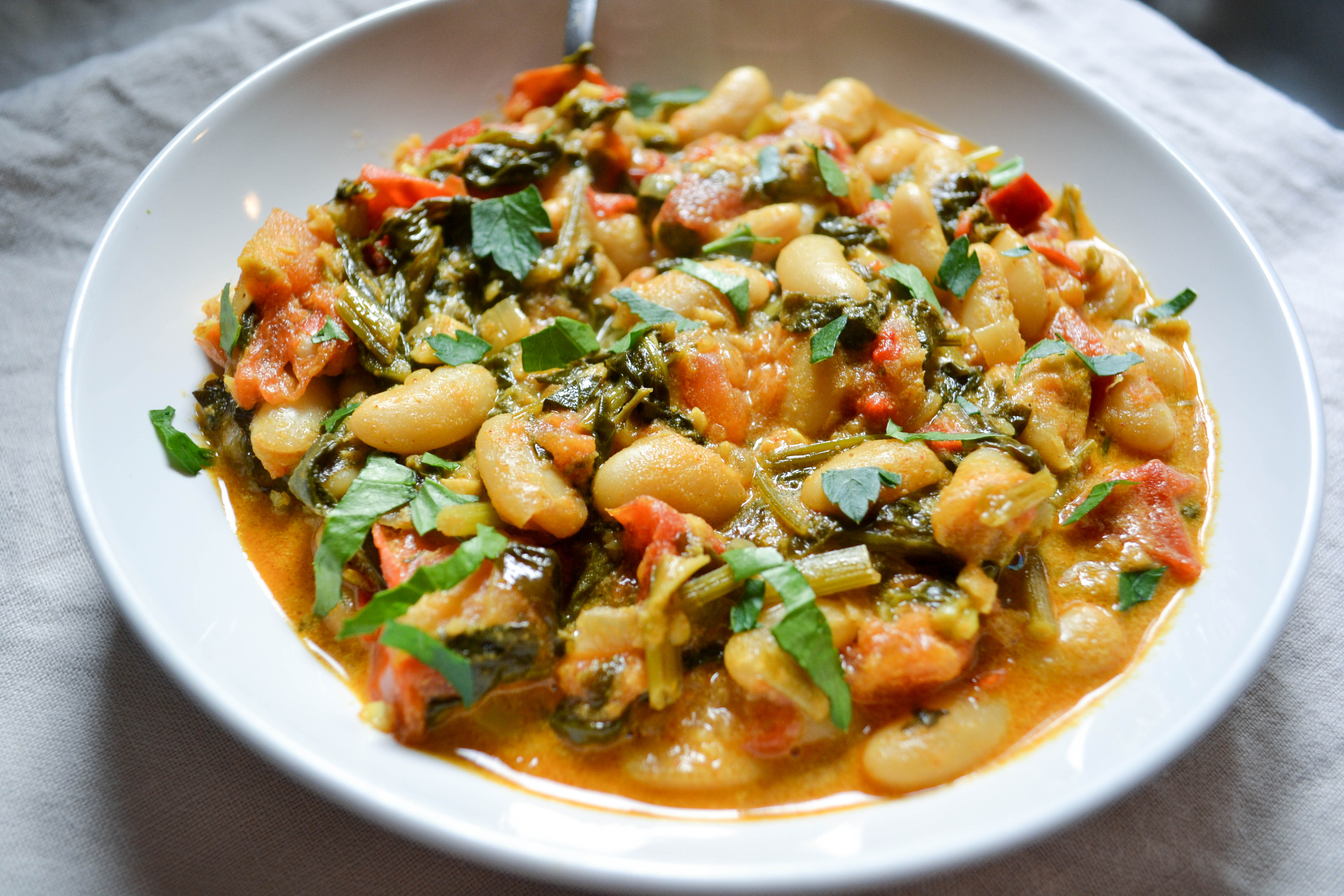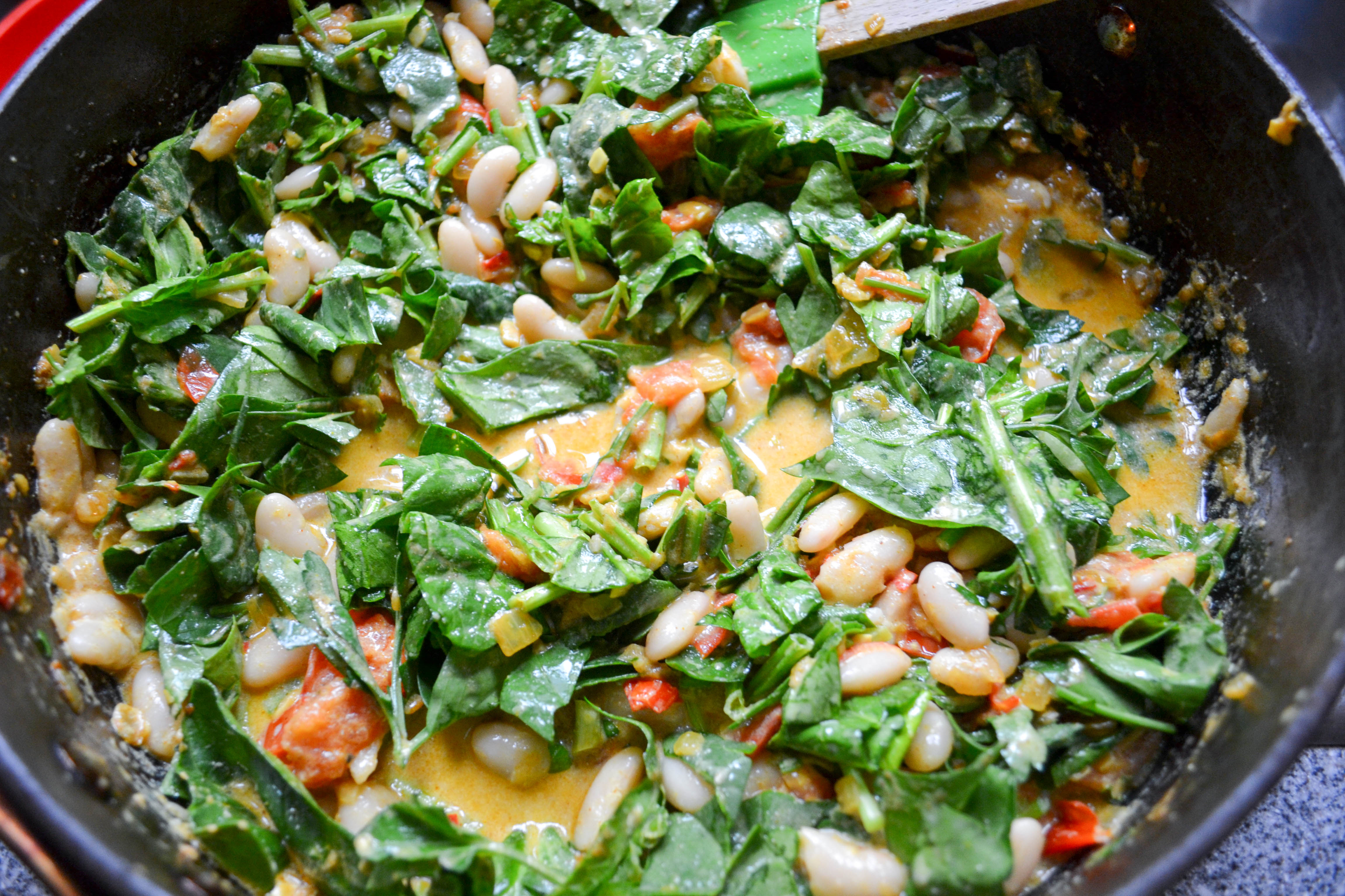cannellini bean, indian, methi, spinach, vegetarian curry, yogurt