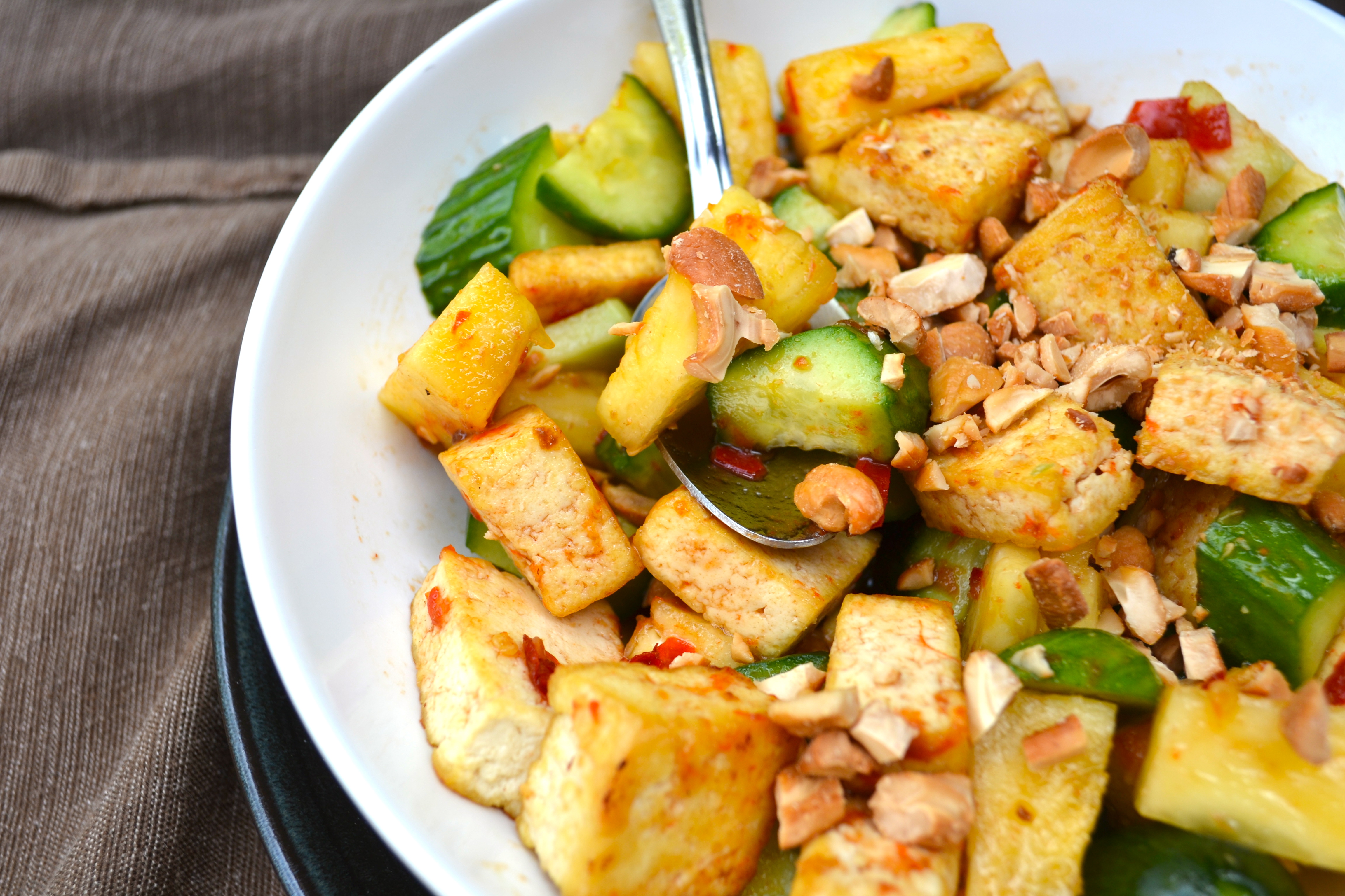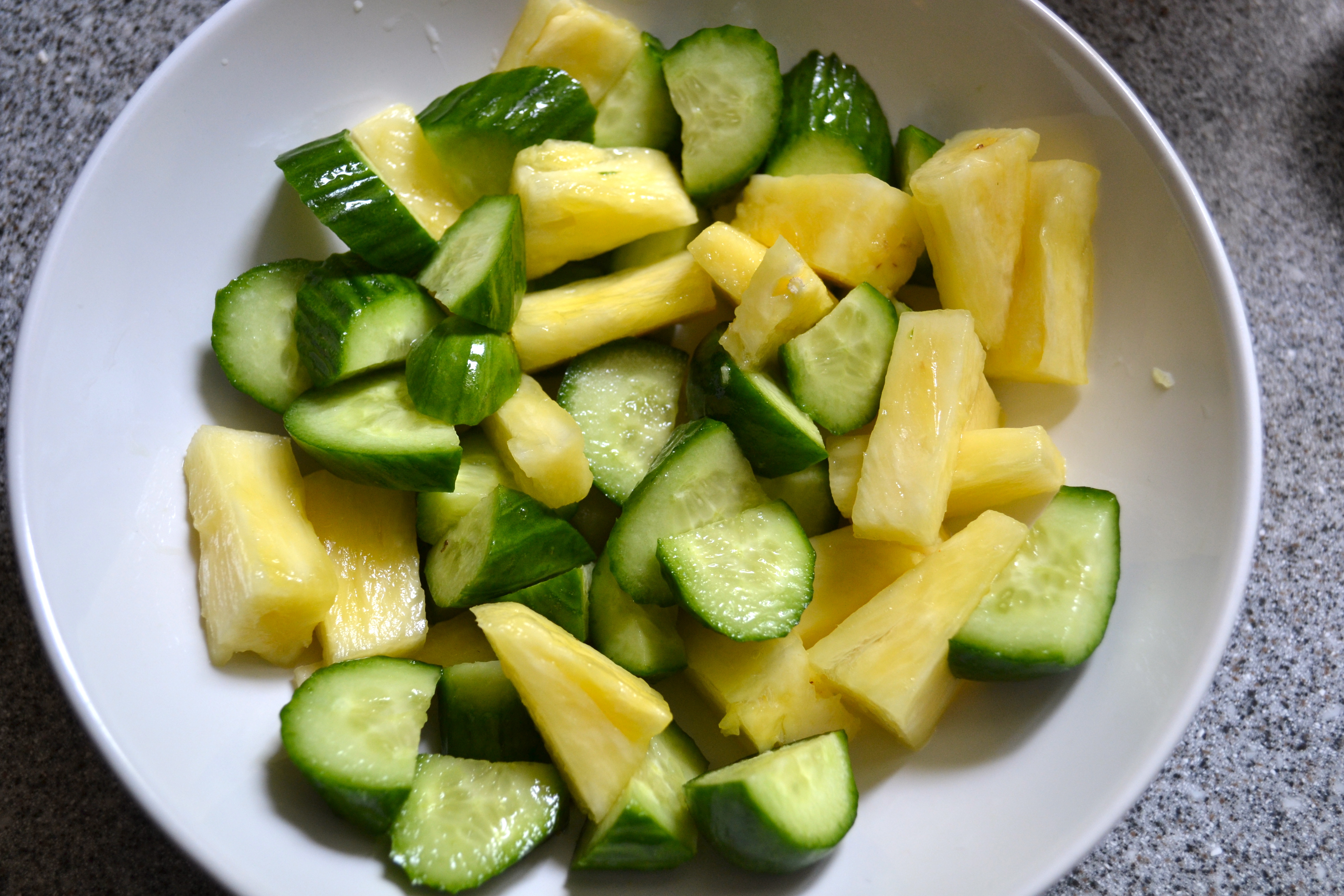 palm sugar, pineapple and cucumber salad, rojak salad, sambal oelek, southeast asian salad, tamarind