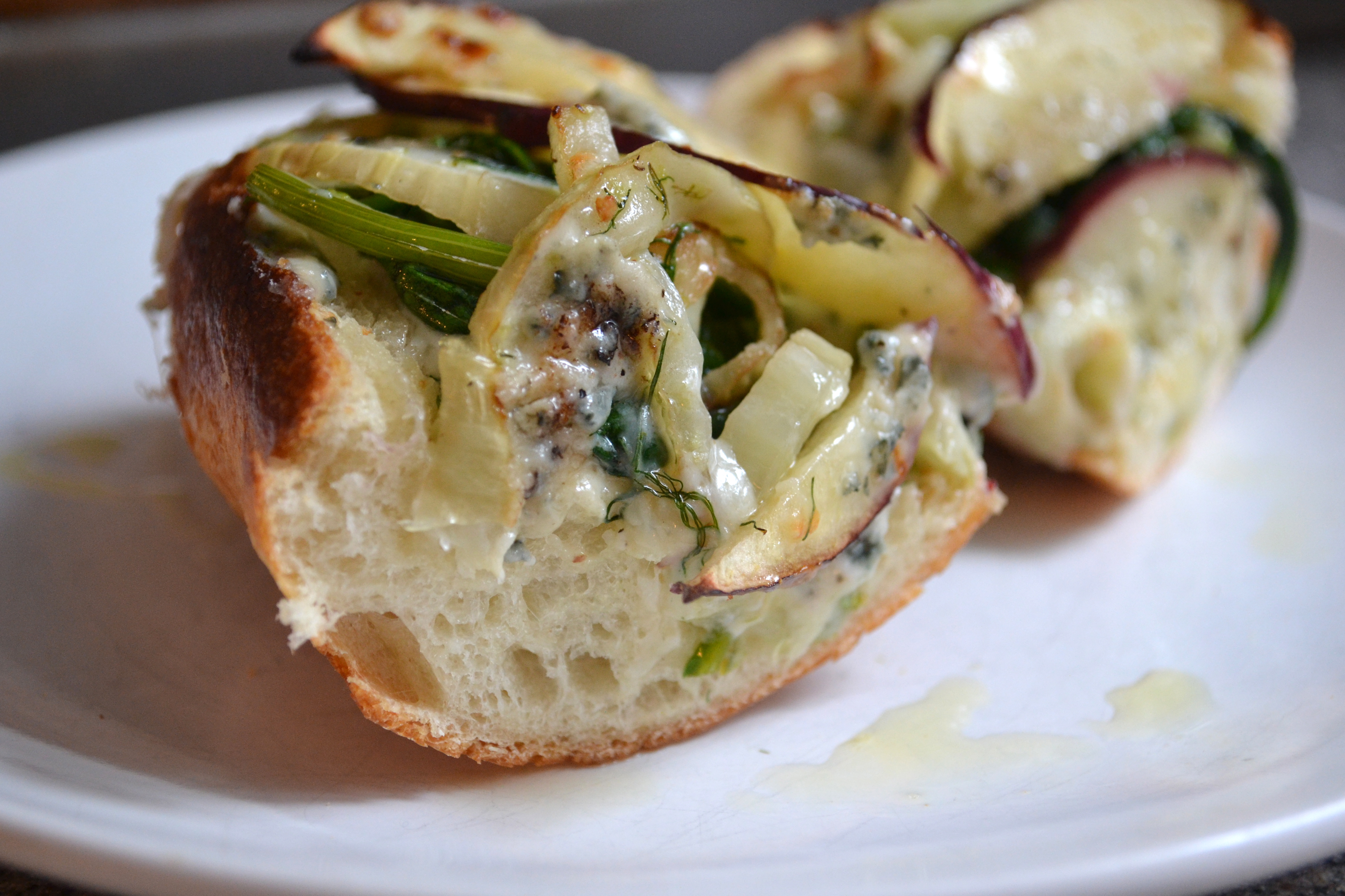My friend turned me on to these lovely, picnic-able French sandwiches, using an olive tapenade in place of anchovies. Otherwise known as tuna niçoise sandwiches. I used to have one for lunch all the time when I was a pescatarian but I didn’t even think they could be veganized. Thanks Kelly!