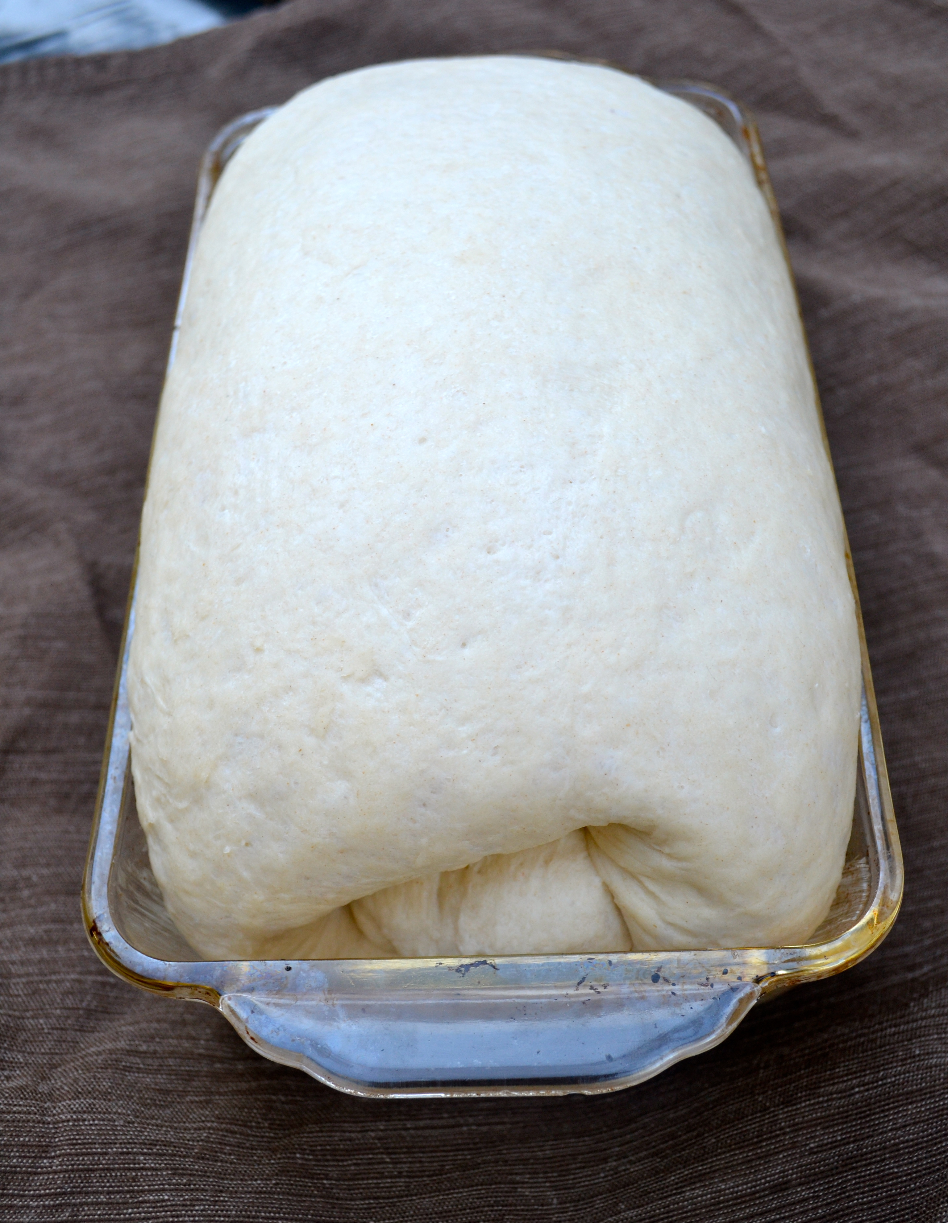 7. After the dough has doubled in size, knock the air out and knead again for a couple of minutes. Shape into a bread loaf by folding one side in and the other side on top of it.