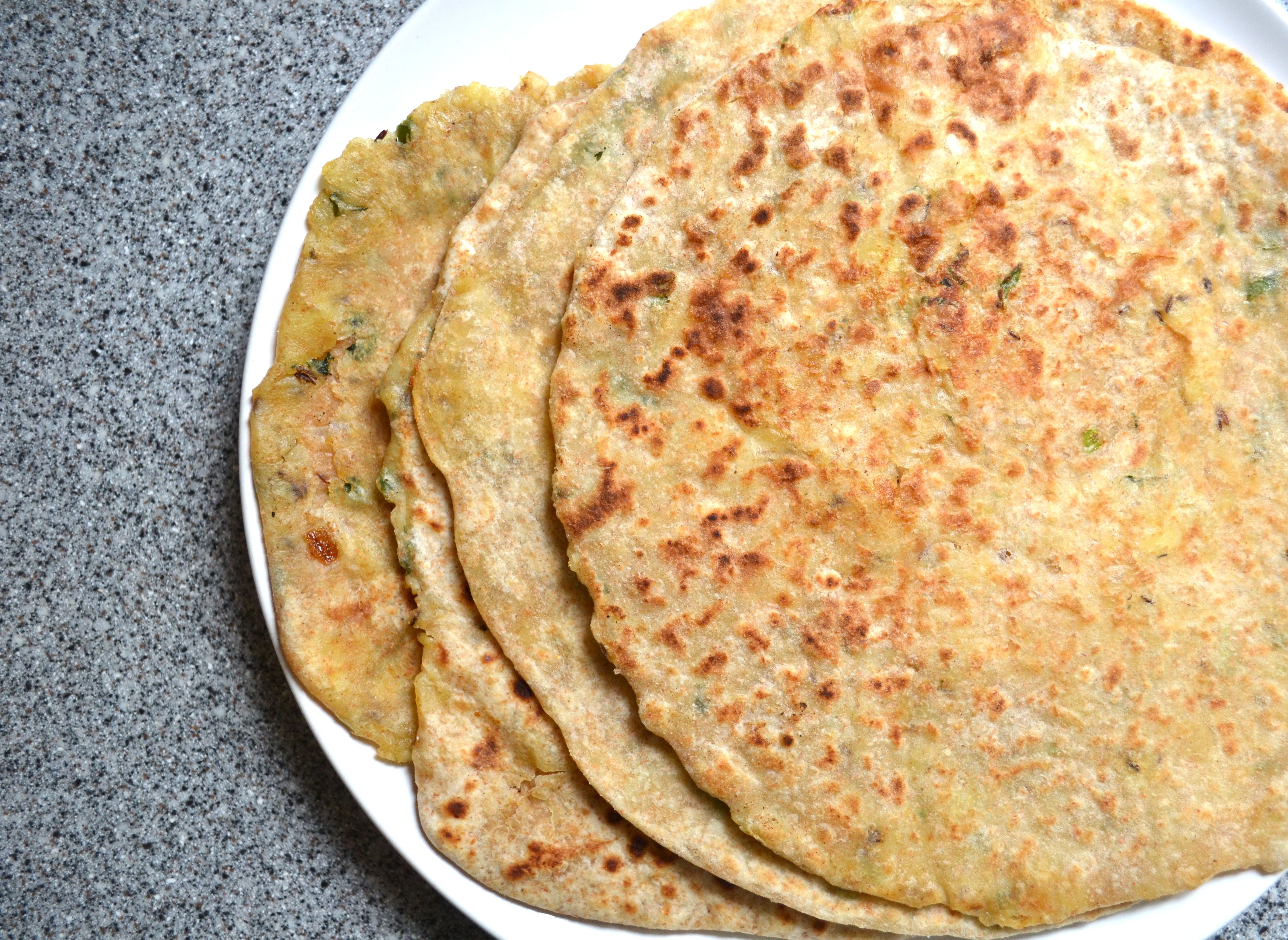 A street food popular in Kolkata, also a quick homemade breakfast or lunchtime snack. Not a revolutionary recipe, but a different way to eat eggs, and also quite handy for when you are on the go or for your kids’ lunchbox. (If they like eggs, which my son does not.) Speaking of packing lunch boxes, parathas are tasty as quesadillas or dipped in hummus too.