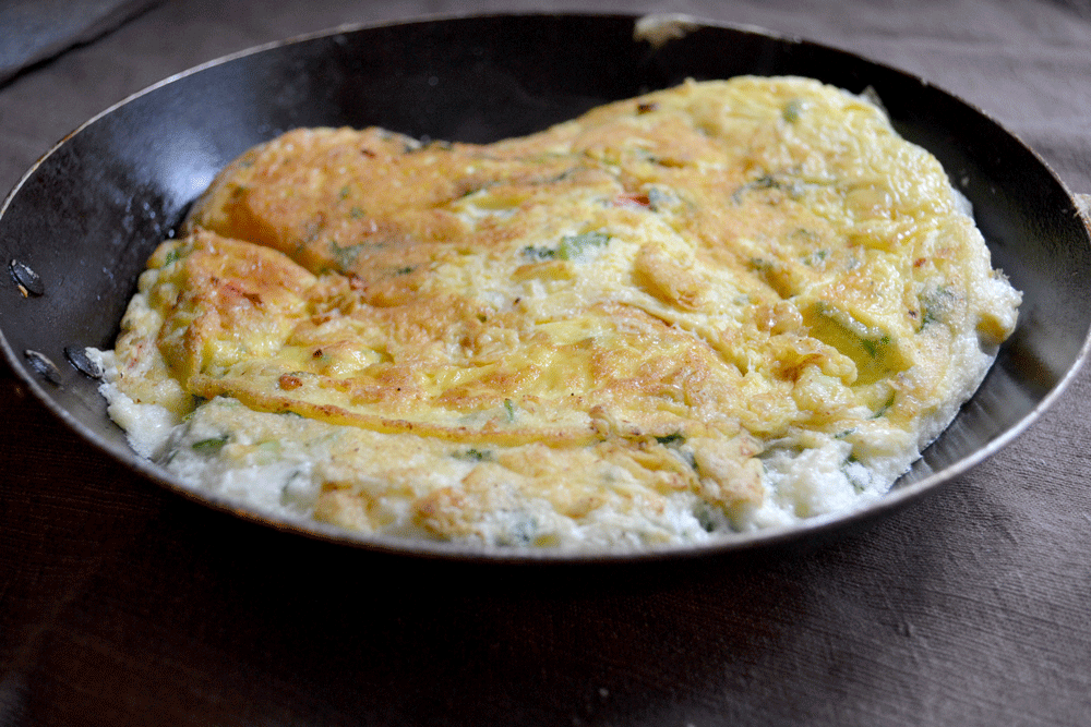 chilies, cilantro, daikon radish, gluten free breakfast, omelette, sesame oil, vegetable omelette, Vietnamese food, vietnamese omelette
