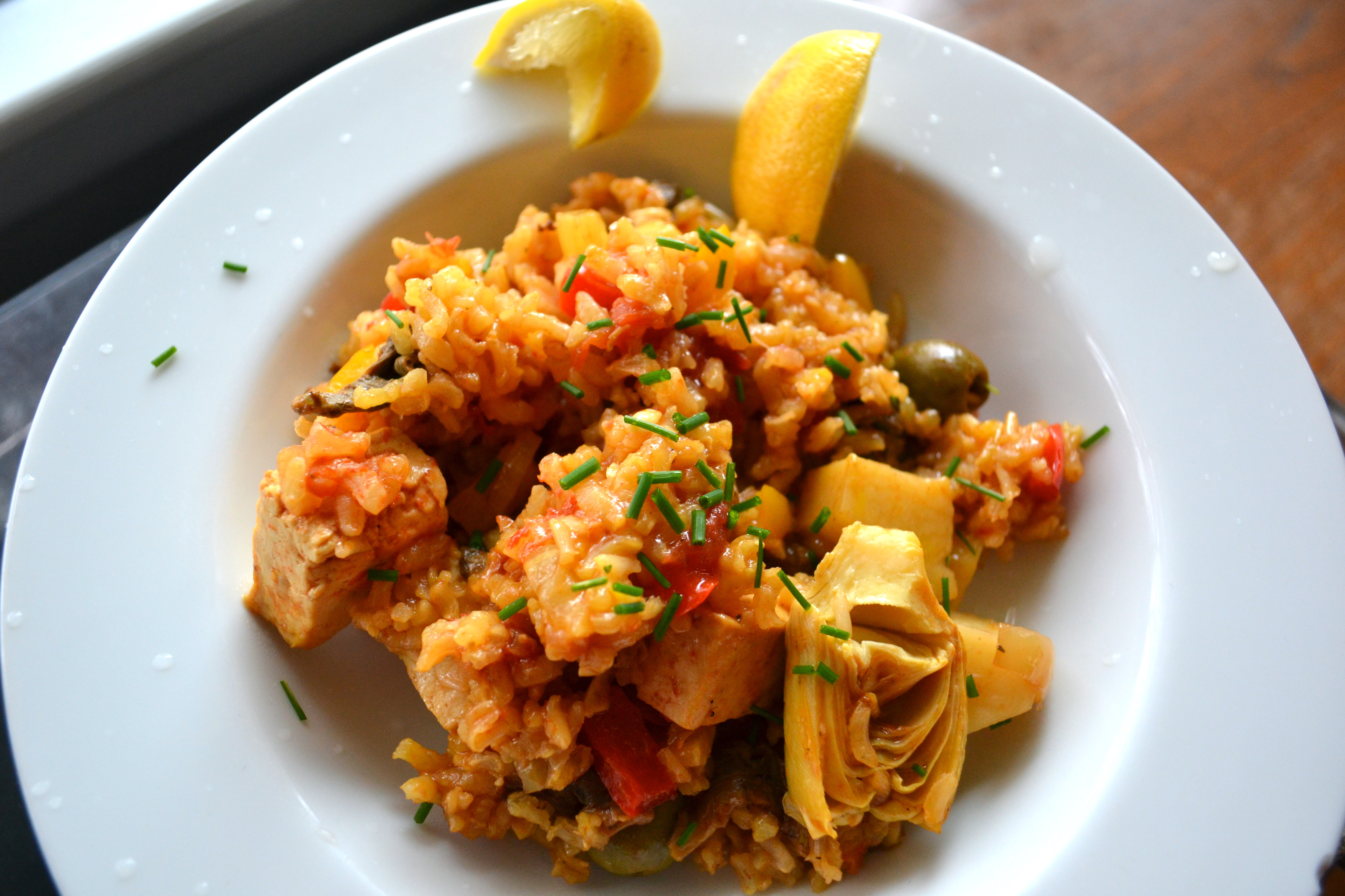 artichokes, kombu, one-pot vegetarian dinner, paella, rice dishes, shitakes, vegan, vegetarian main, vegetarian paella